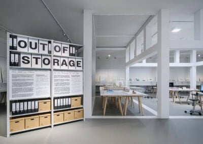 Der Titel „Out of Storage“ ist dabei doppeldeutig: Er ist einerseits als Appell zu verstehen, die vom Freundeskreis unterstützten Sammlungsbestände öffentlich sichtbar zu machen – andererseits verweist er auf die logistischen Herausforderungen wachsender Archive, in denen der Großteil der Bestände verborgen bleibt und nur selten ausgestellt werden kann.
